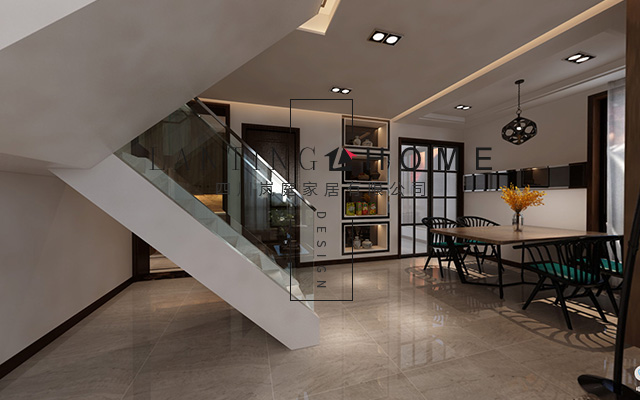 新中式风格非常讲究空间的层次感与跳跃感。在需要隔绝视线的地方,则使用中式的屏风、窗棂、中式木门、工艺隔断、简约化的中式“博古架”等。通过这种新的分隔方式
